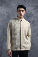 Kemeja ini dirancang dengan potongan Reguler Formal yang memberikan siluet rapi dan profesional. Kemeja ini memberikan sisi tegas melalui desain Asimetris yang dilapisi Brokat dengan sentuhan modern yang unik. Penggunaan Hidden Button memastikan tampilan depan menjadi clean dan minimalis, sementara detail Saku Bobok di dada kiri dan Lengan Panjang dengan Manset Berkancing memperkuat karakter eksklusifnya. Kemeja ini sangat cocok untuk acara formal, perhelatan mewah, maupun momen spesial penting lainnya.