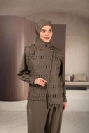 Menggunakan material brocade bermotif geometris, vest ini cocok sebagai statement piece untuk tampilan formal maupun semi-formal