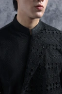 Kemeja ini dirancang dengan potongan Reguler Formal yang memberikan siluet tubuh tegap namun tetap nyaman. Menampilkan sentuhan tegas melalui Panel Depan Asimetris Berbalut Brokat yang memberikan dimensi tekstur mewah dan eksklusif. Penggunaan Kancing tersembunyi menjaga tampilan minimalis, sementara detail kancing pada Panel hadir sebagai aksen dekoratif yang memperkuat karakter desain. Kemeja ini bisa menjadi pilihan untuk berbagai acara istimewa maupun momen formal yang membutuhkan perpaduan antara tradisi dan high-fashion.