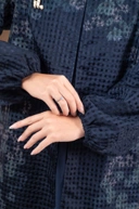 Kancing gold pada bagian depan menambah kesan elegan dan memperkuat karakter luxurious pada keseluruhan look