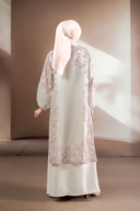 Tekstur organza yang transparan memberikan dimensi visual yang menawan, sementara motif bunga memberi sentuhan romantis yang timeless.