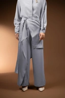 Detail lapisan layer yang dapat dilepas pasang, memberikan kesan unik dan modern, sehingga bisa digunakan dalam 2 style : celana saja tanpa layer ataupun dengan layer yang stylish.