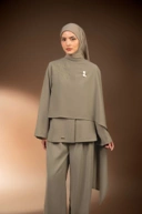 Detail dua kancing snap pada selendang sebagai opsi styling selendang, clean maupun sedikit drapery.