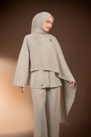 Blus selendang dengan tampilan modest dengan kesan feminin, anggun, dan berkarakter.