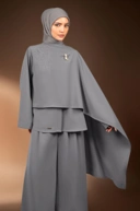 Detail dua kancing snap pada selendang sebagai opsi styling selendang, clean maupun sedikit drapery.